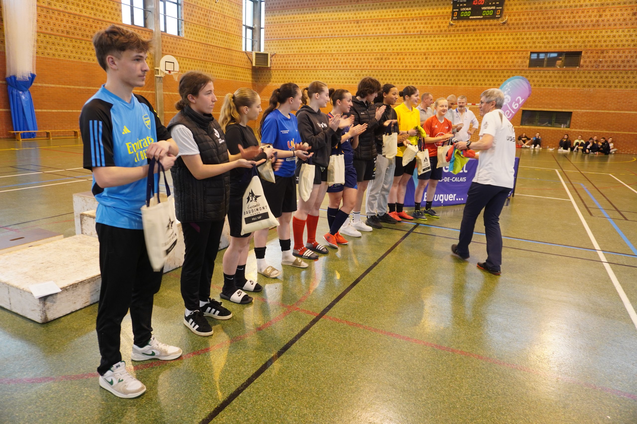 Les Arrageoises de l’Ensemble Baudimont montent sur la deuxième marche du podium derrière Ploërmel (Lycée Lamenais) et devant Quimper (Le Likes). Laurie Boisleux, de l’équipe d’Arras, est la meilleure buteuse de la compétition.